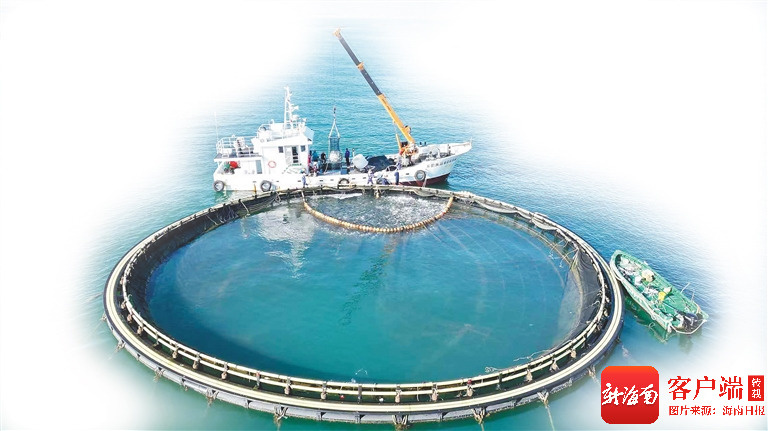 海南神农水产种源科技有限公司在儋州峨蔓湾海域开展深海网箱养殖。海南神农水产种源科技有限公司供图